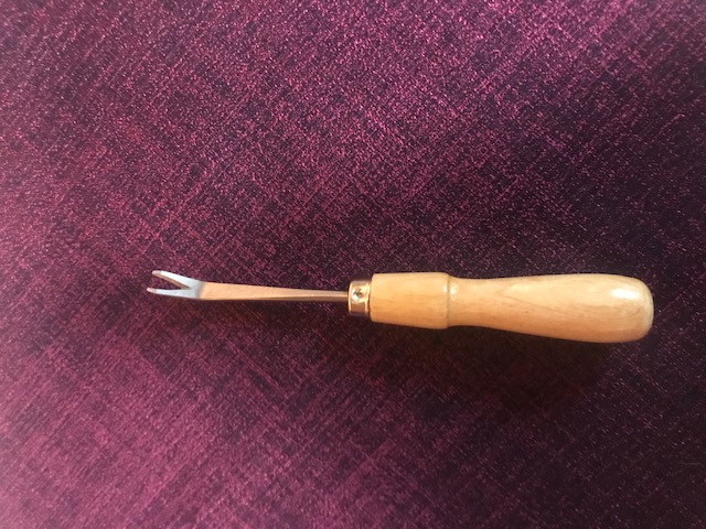 Upholstery Hammer is a slender hammer with a magnetized head. It’s traditionally used to hammer hard nails into furniture. It’s mostly used today to flatten staples that can’t be pulled from the wood; which if left could create an injury or a snag in the new fabric. This product can be found at Tedco.