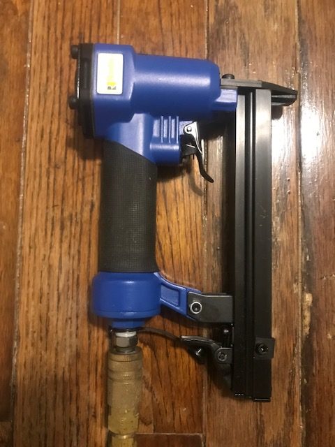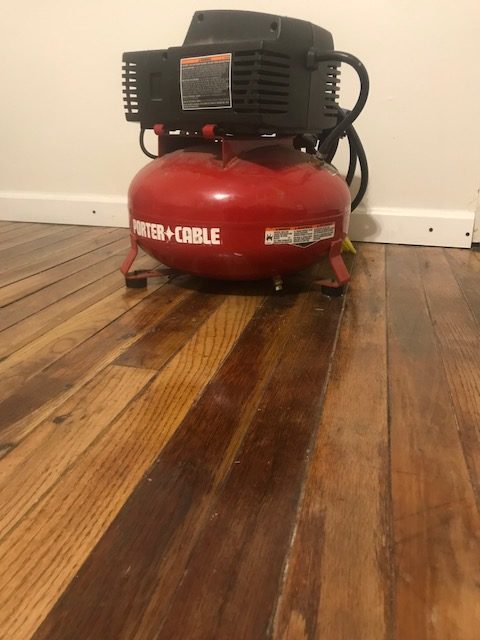 Air Compressor is a machine that compresses air, and powers the staple air gun for heavy-duty upholstery. This product can be found at any Home Depot located in Baltimore.